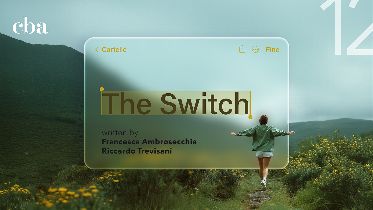 The Switch è una newsletter sul cambiamento. Una collezione di storie, pensieri e riflessioni su come il branding possa ispirare e guidare la crescita. Un dialogo aperto e stimolante, che porta allo scoperto punti di vista e anime delle persone di CBA.